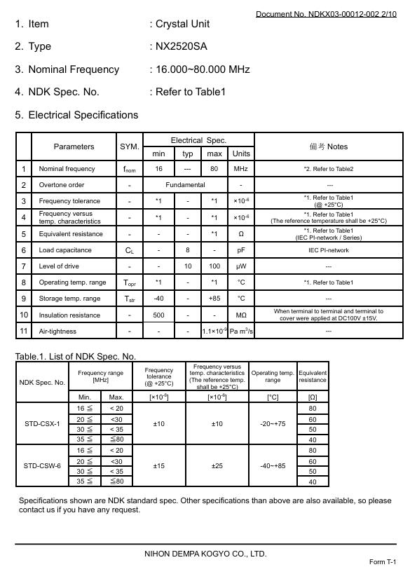 | 晶振規(guī)格參數(shù) | NX2520SA-32MHZ-STD-CSW-2無源晶振 |