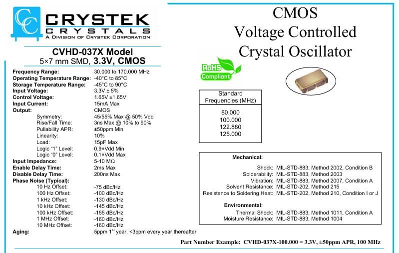 | 品牌 | 美國瑞斯克Crystek有源晶振VCXO |