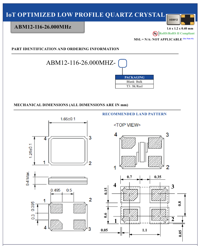 晶振撬動智能新時(shí)代當(dāng)可穿戴設(shè)備精準(zhǔn)監(jiān)測健康數(shù)據(jù),當(dāng)物聯(lián)網(wǎng)設(shè)備實(shí)現(xiàn)遠(yuǎn)程智能控制,當(dāng)藍(lán)牙模塊無縫傳輸信息,這些智能場景的背后,都離不開一個(gè)核心元器件——晶振.美國艾博康(Abracon晶振)推出的ABM12-116-26.000MHZ-T3晶振,以其卓越性能成為低功耗智能設(shè)備的“心臟”,彰顯著方寸之間的科技力量.